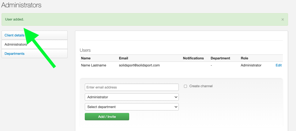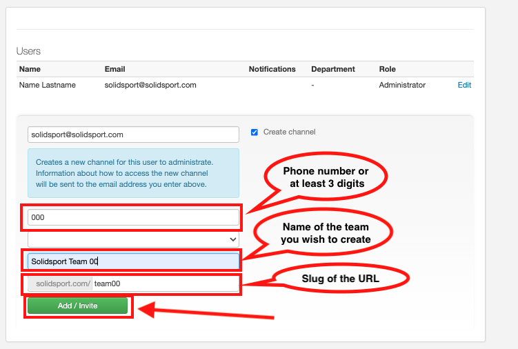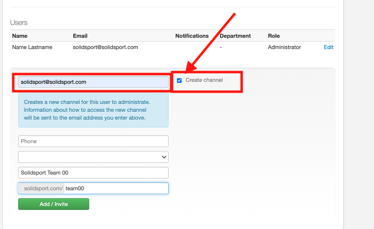 Add your account as a new administrator for the club channel and then click on Create Channel. This will grant you access to the newly created channel, allowing you to add other users to it later.