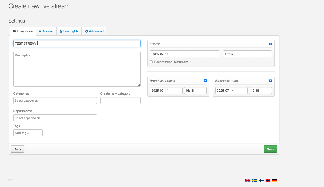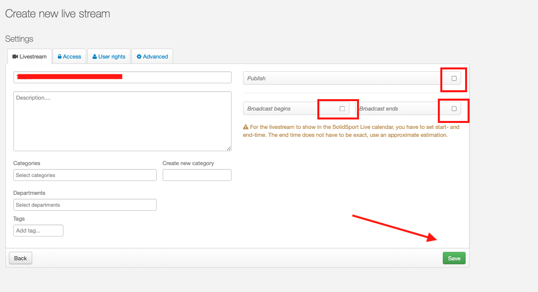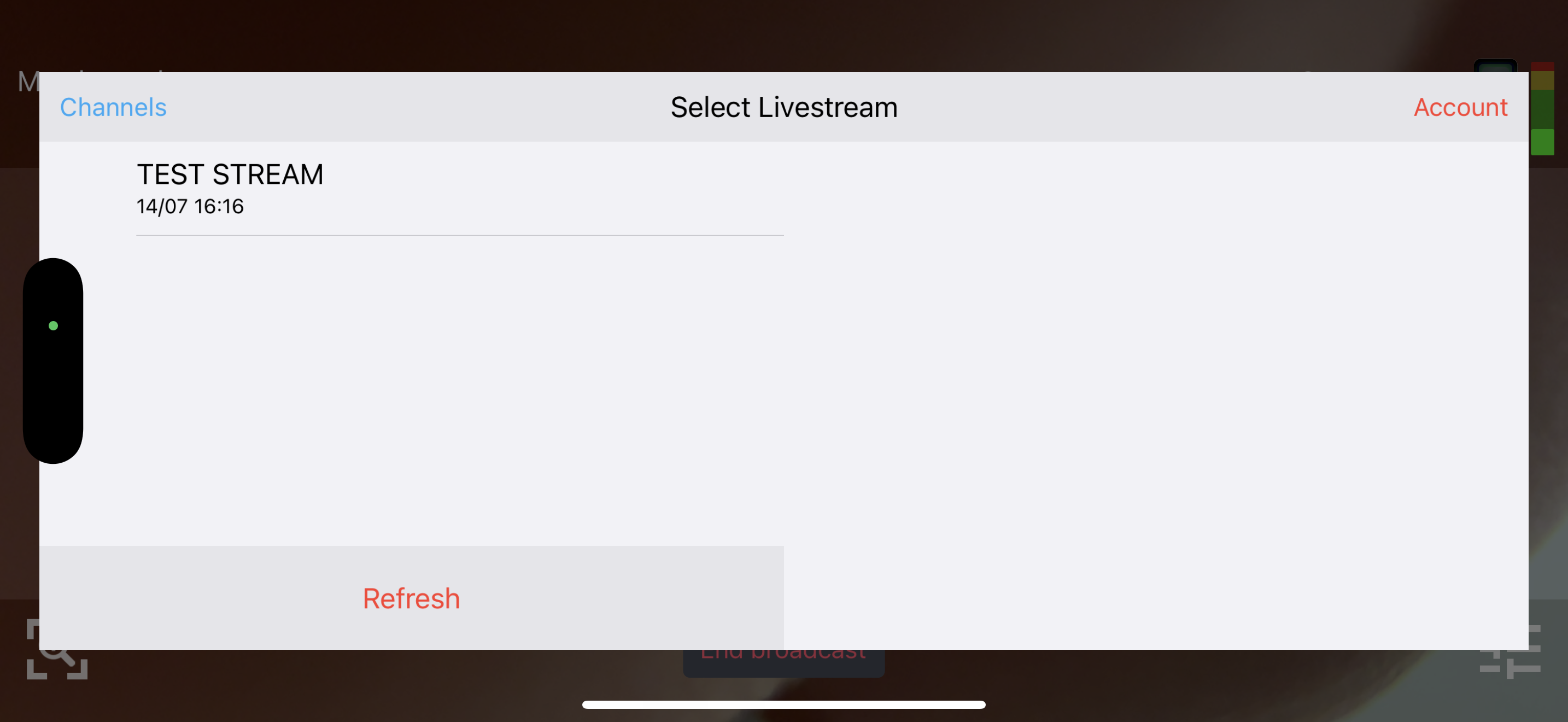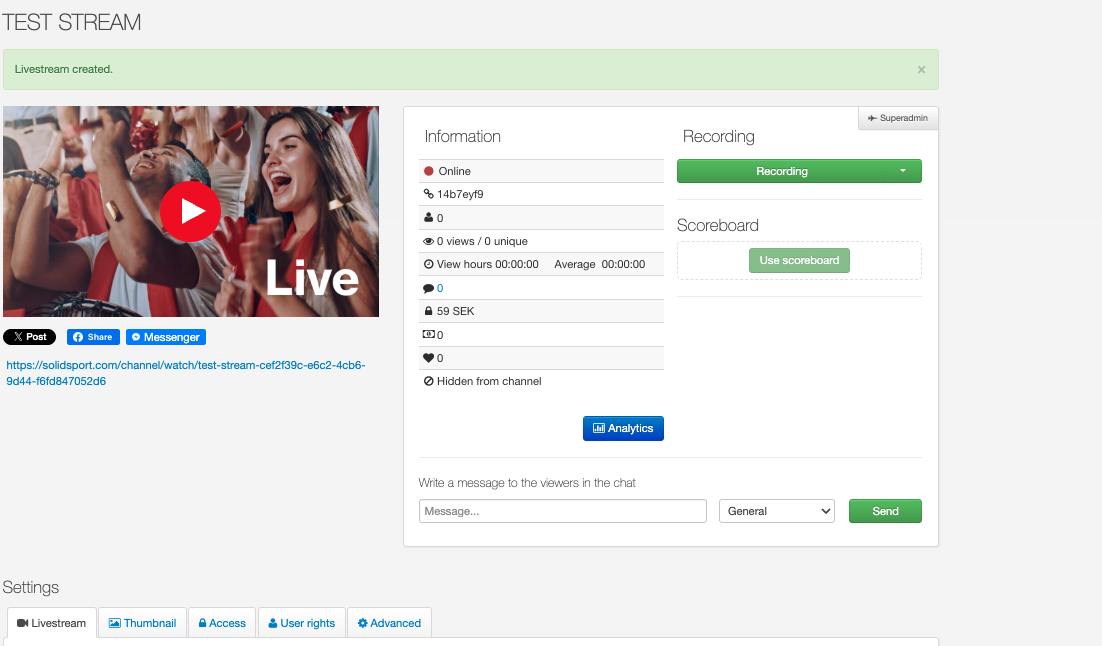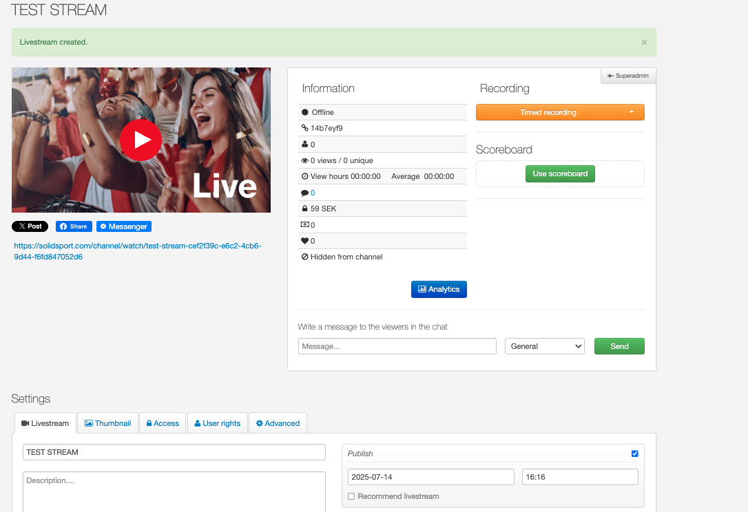 You can now access the broadcast in Solidsport broadcaster app and with another unit also check how it looks here in the backend without anyone else being able to see it on your page.