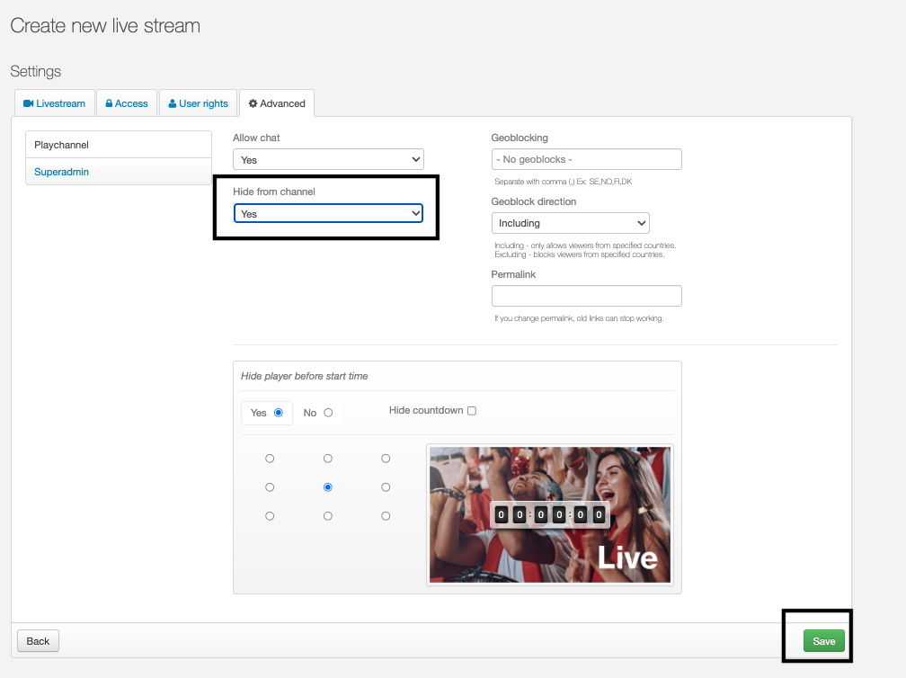 If you want to create a test stream that remains concealed from the channel—such as when you want to preview the filming from the backend without anyone else being able to view it—you can follow these steps:
