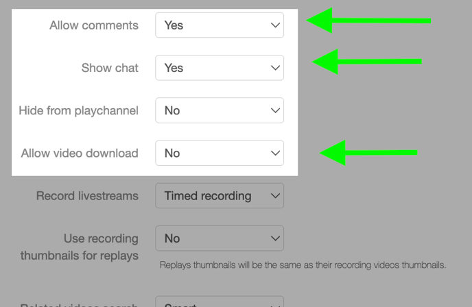 Comments: Allow viewers to comment on your livestream (yes/no).