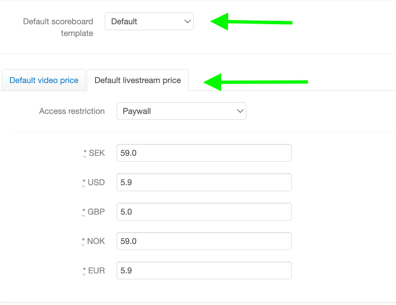 Price: The default price for livestream on your channel (minimum 29 SEK/ 3 USD/ 3GBP/ 29 NOK/ 3 EUR)